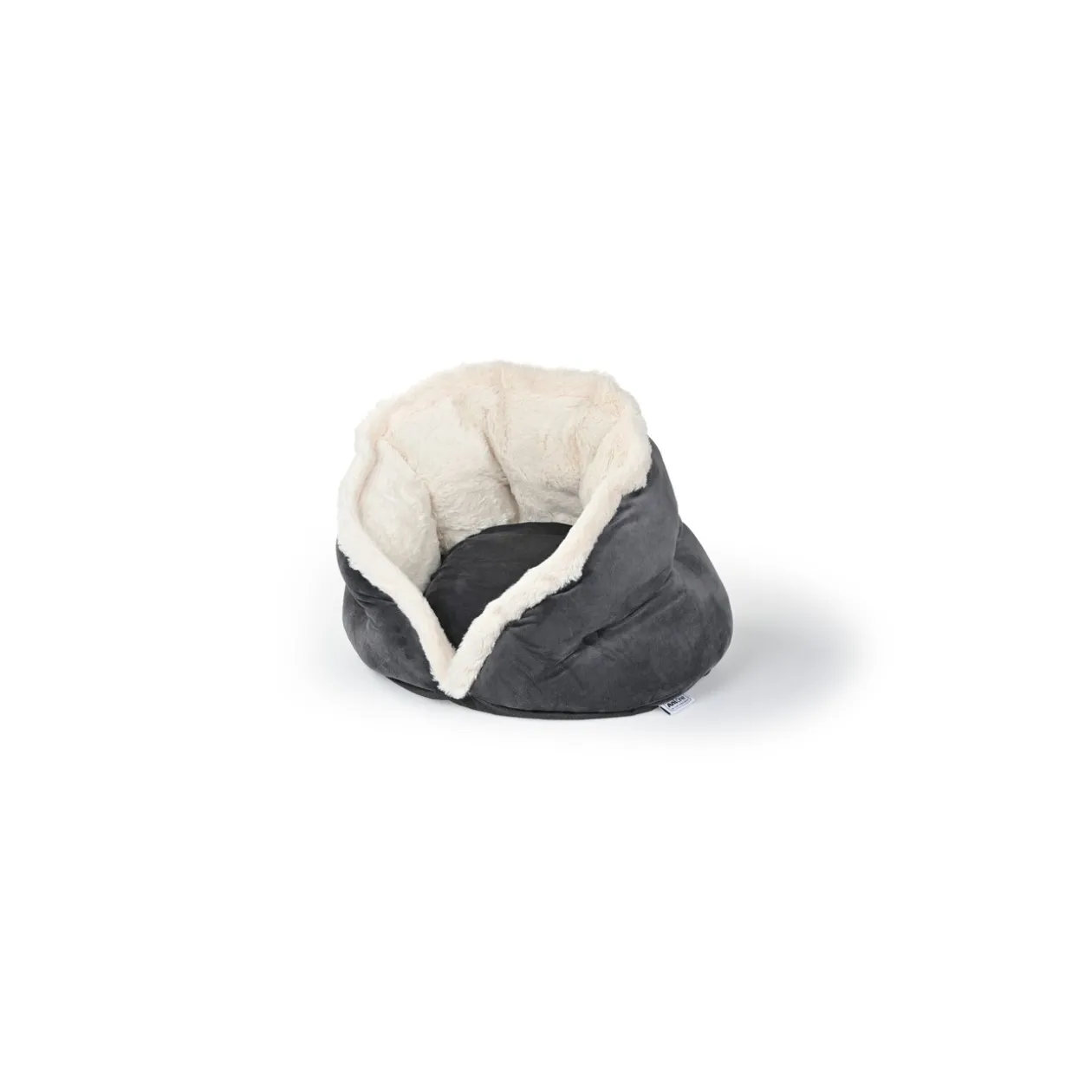 La grotte douillette Lou AniOne offre un confort de couchage optimal à votre compagnon. La face extérieure et une face du coussin sont recouvertes de peluche douce à poils courts grise, qui lui donne une apparence raffinée et luxueuse.