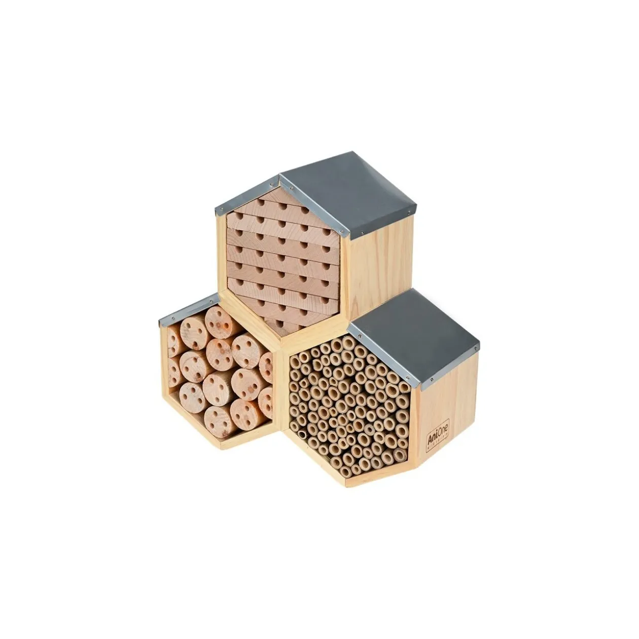 Le nichoir rempli de tiges de bambou est fabriqué en bois dur et soutient ainsi les abeilles sauvages et autres insectes qui contribuent de manière importante à la pollinisation. Les bords lisses augmentent les chances d’une colonisation et le toit métallique protège contre les intempéries.