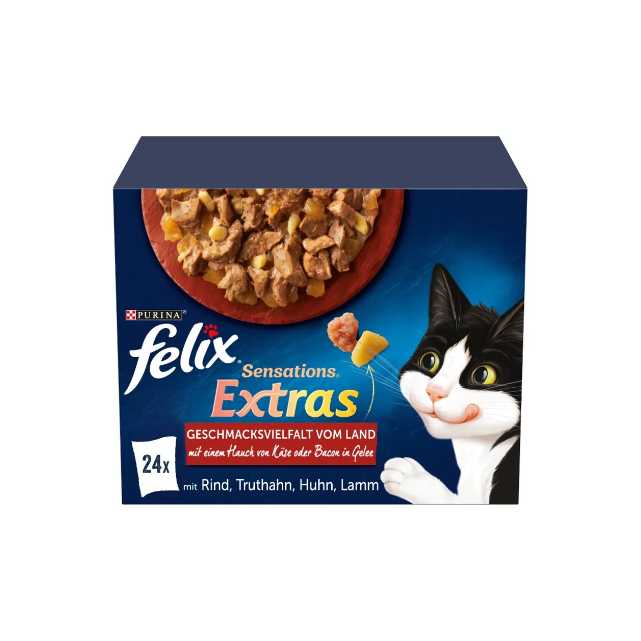 Multiplicité de saveurs de la campagne Felix Sensations Extras 24 x 85 g :
