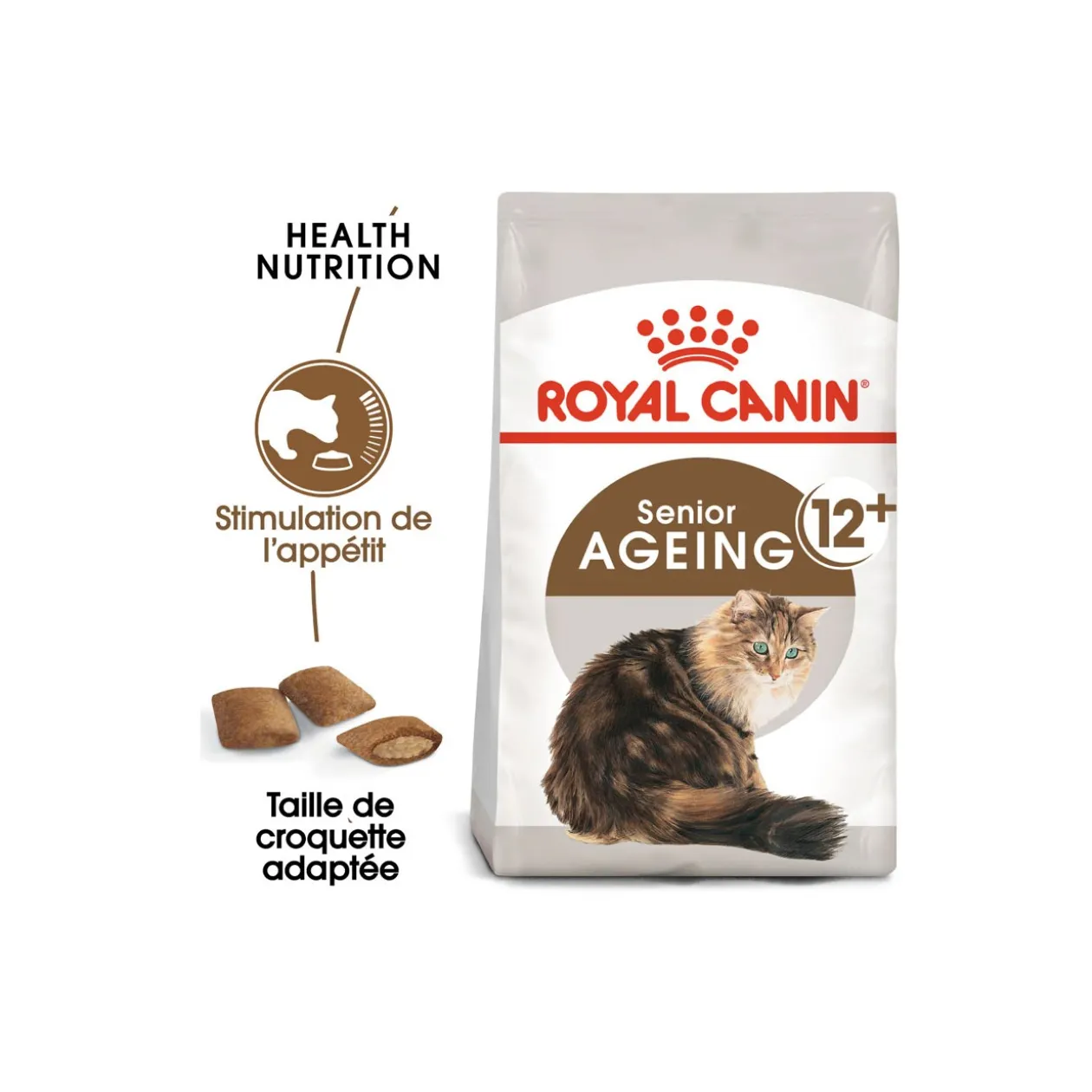 ROYAL CANIN Senior Ageing 12+ est idéal pour les chats dès l’âge de 12 ans. Les aliments pour chats sont spécialement adaptés aux besoins particuliers des chats seniors.