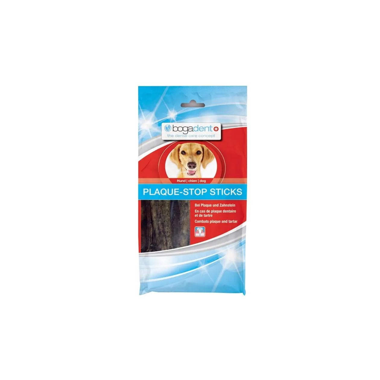 Le complexe Plaque-Stop nouvellement développé à base d’une huile spéciale d’algues et de saumon est appliqué directement sur des bandes de peau de bœuf en utilisant un processus innovant et préservateur. Les PLAQUE-STOP STICKS de bogadent, un produit à mâcher savoureux et fonctionnel empêchant activement la formation de plaque et de tartre, en sont le résultat.