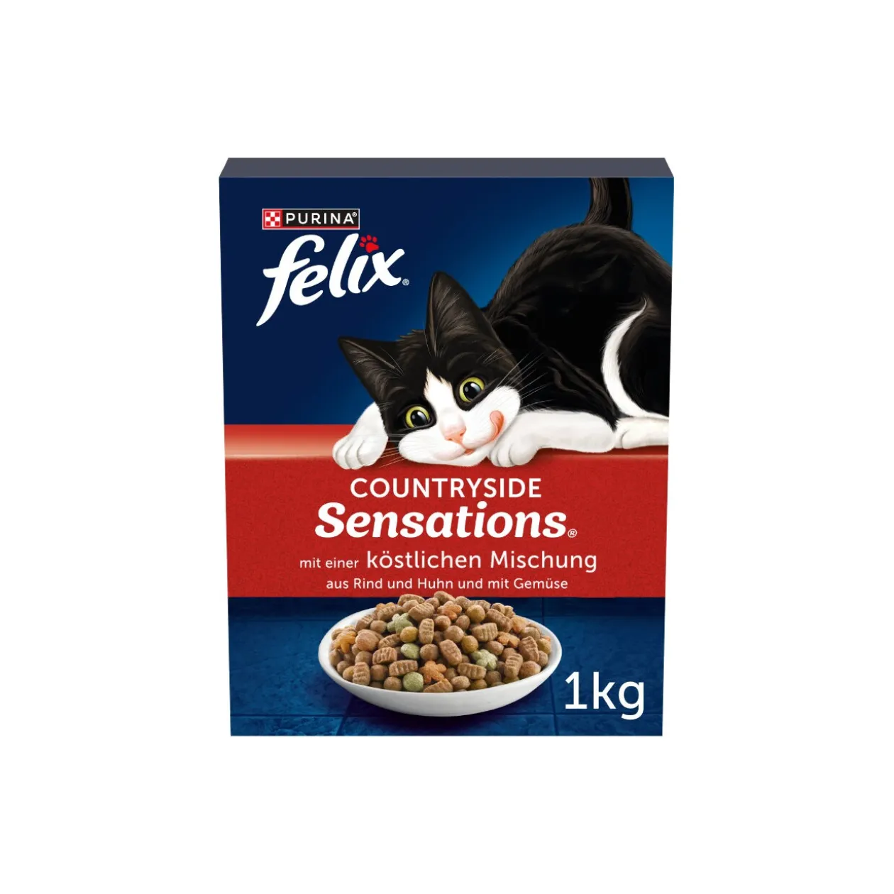 Les repas FELIX Countryside Sensations ont une belle apparence, une bonne odeur et un goût extraordinairement bon pour votre chat. La nourriture sèche FELIX Countryside Sensations pour chats est 100 % complète et équilibrée. Une combinaison savoureuse de bœuf et de poulet fait ronronner votre petit quadrupède.