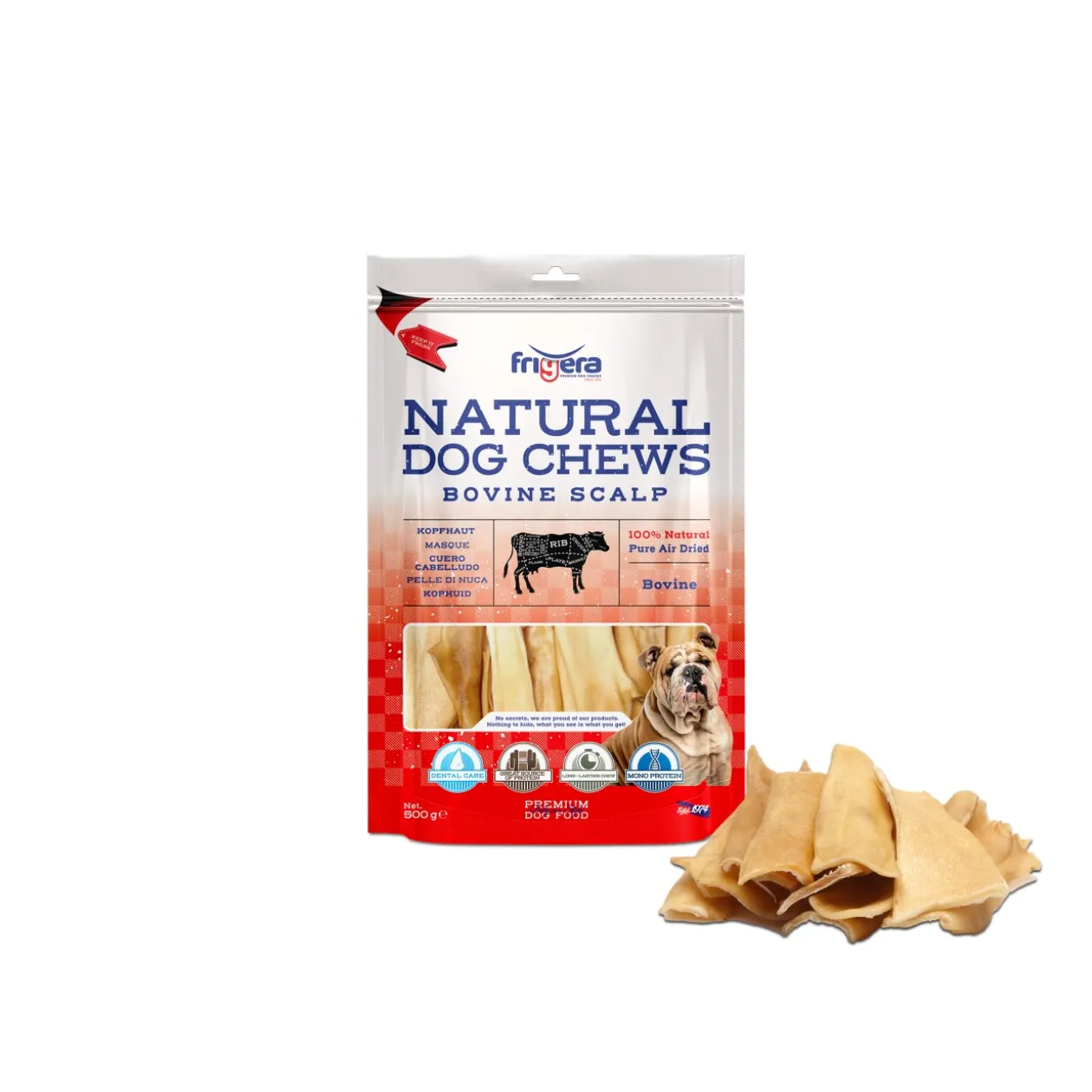 Une noix dure : cuir chevelu friGERA – parfait pour les chiens avec un fort besoin de mâcher ! Notre cuir chevelu est un snack savoureux composé de cuir chevelu naturel délicatement séché de bœufs élevés en plein air, fabriqué à partir de viande de qualité alimentaire.