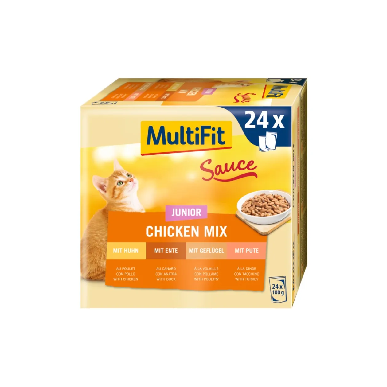 Le MultiFit Junior Sauce Chicken Mix Multipack est une option nutritionnelle idéale pour les chatons, spécialement mis au point pour soutenir les besoins énergétiques accrus et la croissance des jeunes chats avec une série de viandes nutritives de qualité supérieure dans une sauce fine. Avec sa formule sans ajout de sucre ni de colorants ni de conservateurs, il contribue à une alimentation équilibrée et favorise l’appétence et la croissance des chatons grâce à l’enrichissement en calcium supplémentaire.