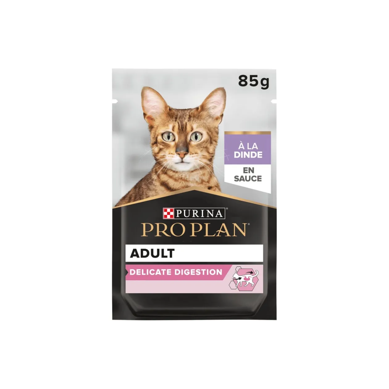 PURINA® PRO PLAN® Adult Delicate Digestion à la Dinde en Sauce a été spécialement formulé pour aider à contrôler la sensibilité cutanée grâce à des teneurs élevées en acides gras Oméga 3&6 et élaboré avec des ingrédients de haute qualité pour une bonne digestion.
