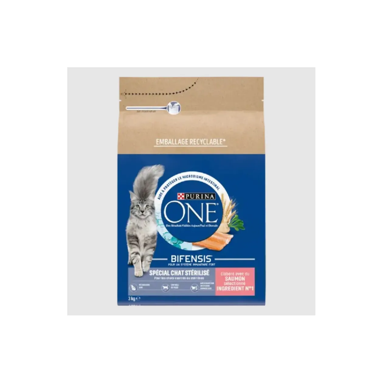 Notre aliment pour chat stérilisé lui apporte également tout ce dont il a besoin pour rester heureux et en bonne santé. Notre aliment savoureux au saumon et au blé pour chat stérilisé contient des ingrédients de haute qualité pour garantir que votre chat reçoit tous les nutriments essentiels dont il a besoin à chaque repas. La bonne absorption des nutriments est facilitée par la grande qualité des ingrédients utilisés dans PURINA ONE® BIFENSIS® SPÉCIAL CHAT STÉRILISÉ.