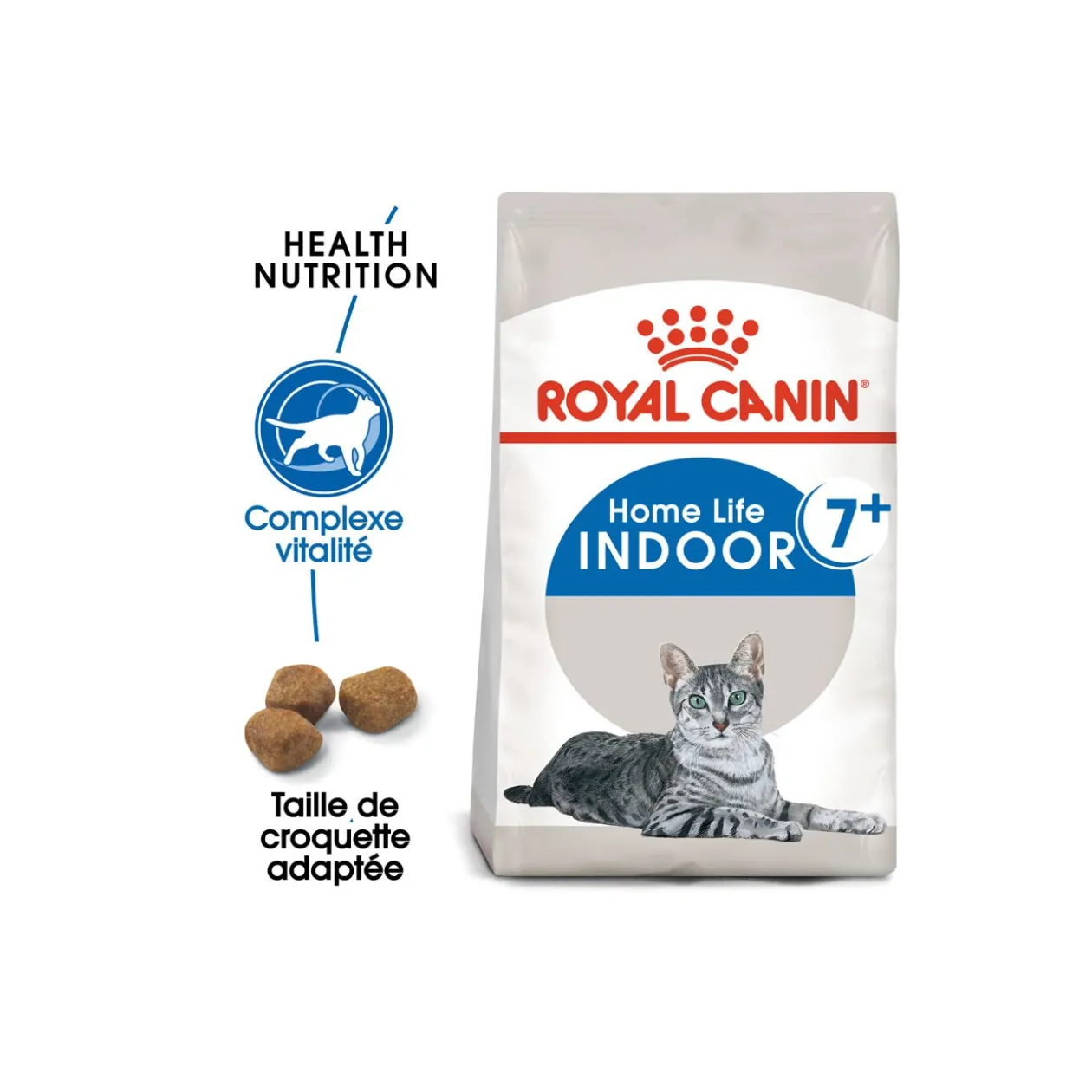 ROYAL CANIN Indoor 7+ convient aux chats à partir de 7 ans et a été spécialement développé pour les besoins nutritionnels d’un chat adulte qui vit principalement dans la maison.