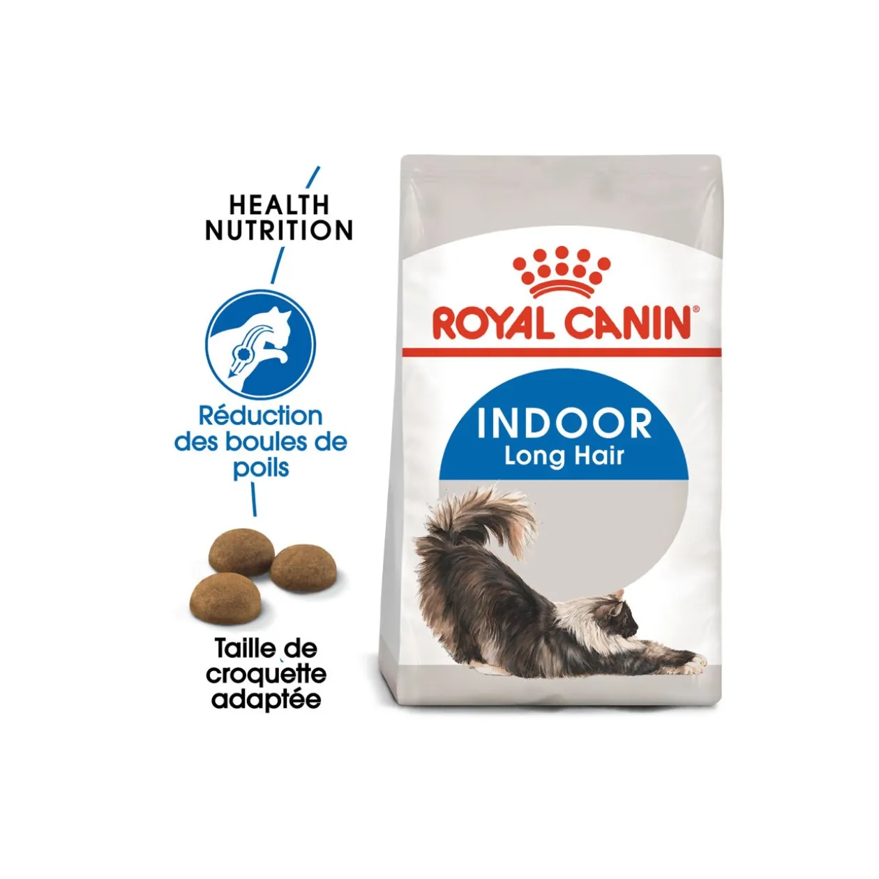 La nourriture pour chats ROYAL CANIN Indoor Long Hair est spécialement adaptée aux besoins particuliers des chats d’intérieur à poils longs. Les croquettes stimulent naturellement l’activité intestinale et favorisent une bonne digestion grâce à des fibres sélectionnées (y compris le psyllium). Cela aide le chat à éliminer les poils qu’il a avalés lors de sa toilette, prévenant ainsi la formation de boules de poils.