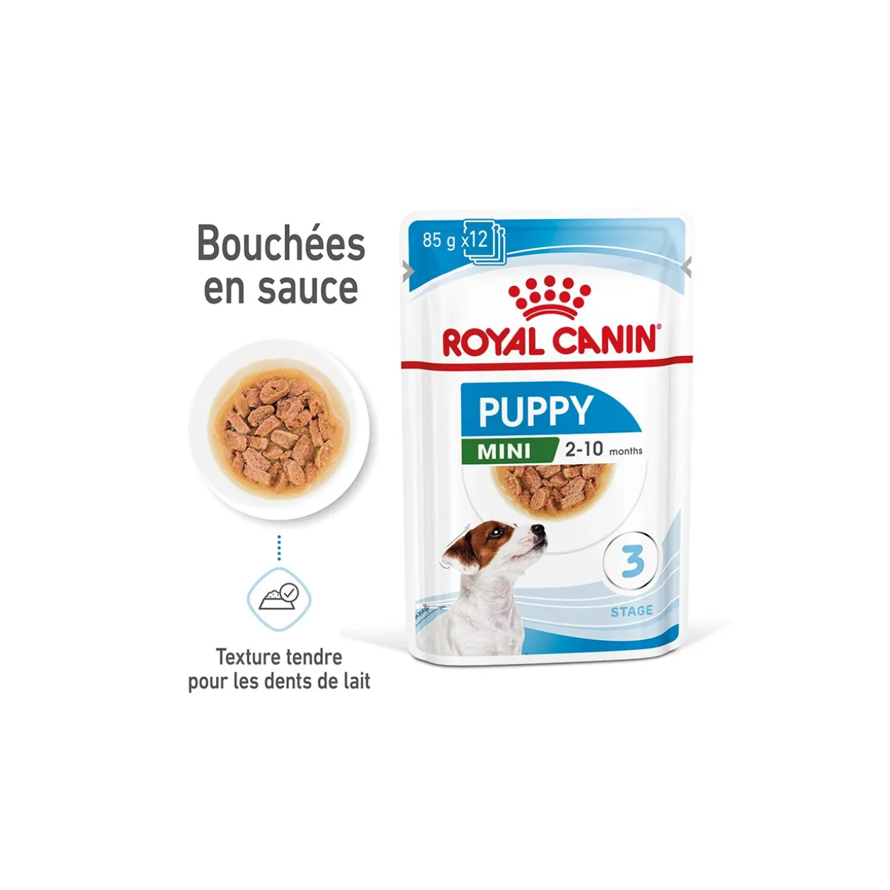 ROYAL CANIN Mini Puppy est également disponible en nourriture sèche sous forme de croquettes croustillantes. Si vous envisagez une alimentation mixte à base d’aliments secs et humides, il vous suffit de suivre les conseils d’alimentation. Vous garantirez ainsi à votre chien qu’il recevra les quantités adéquates d’aliments secs et humides.