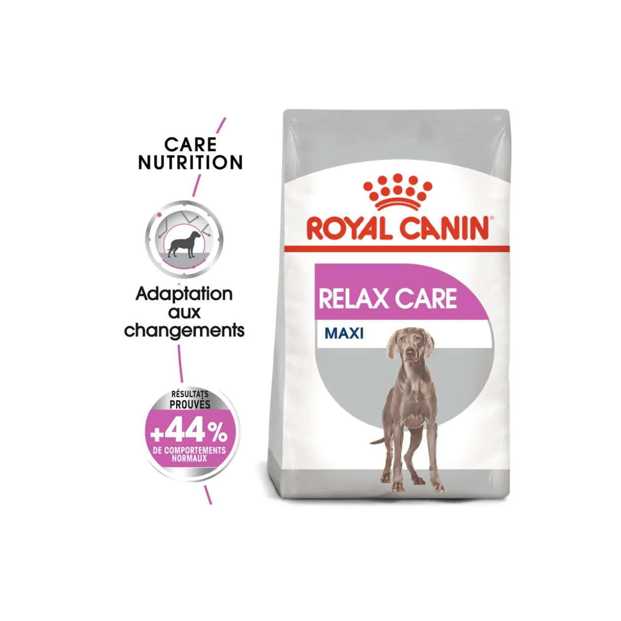 La formule Relax Care Maxi est adaptée aux chiens pesant entre 26 et 44 kg et favorise une adaptation optimale.