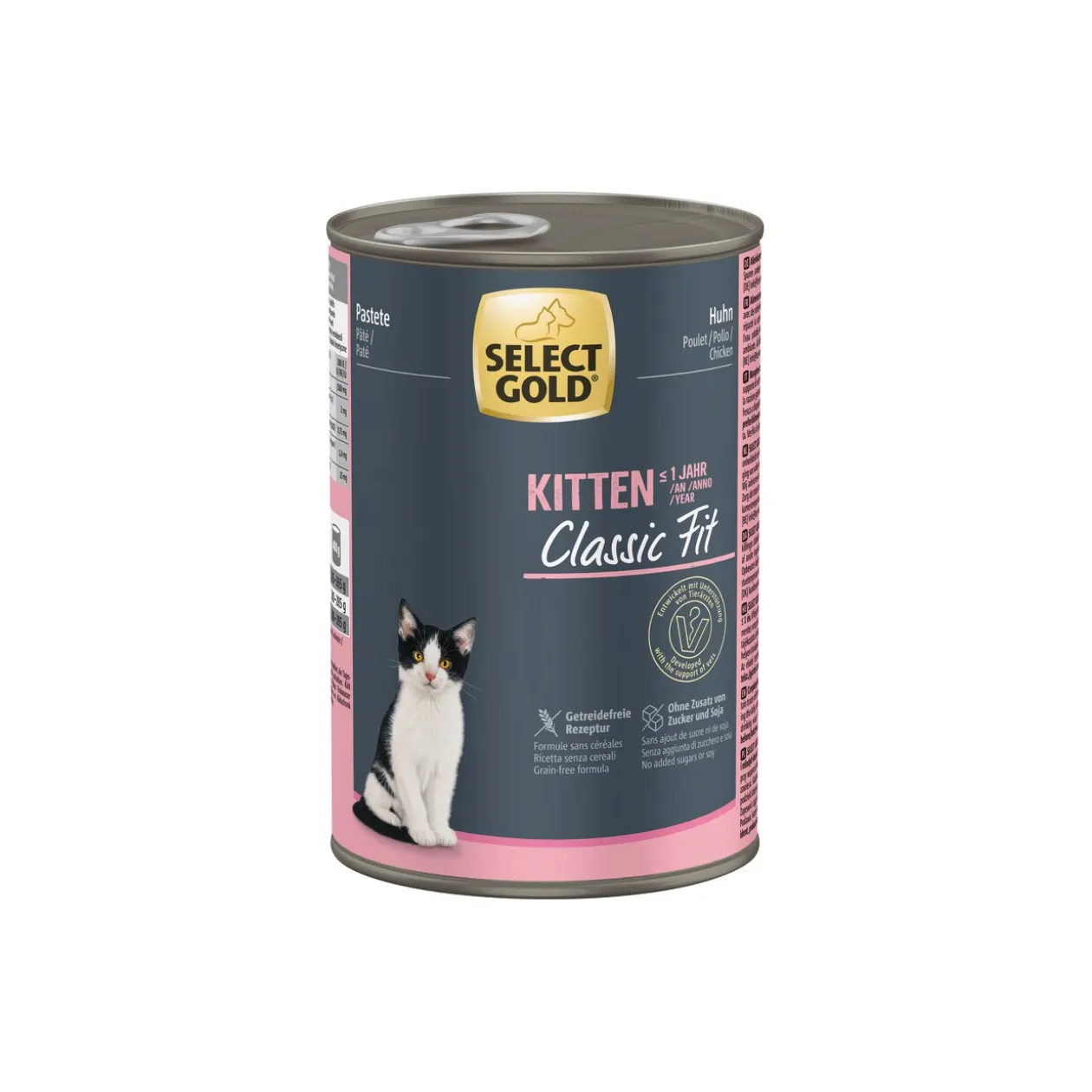 SELECT GOLD Kitten Poulet est idéalement formulé pour les chatons et jeunes chats du sevrage jusqu’à environ 12 mois, et fournit aux petits chatons une nutrition optimale pendant la phase de croissance importante.