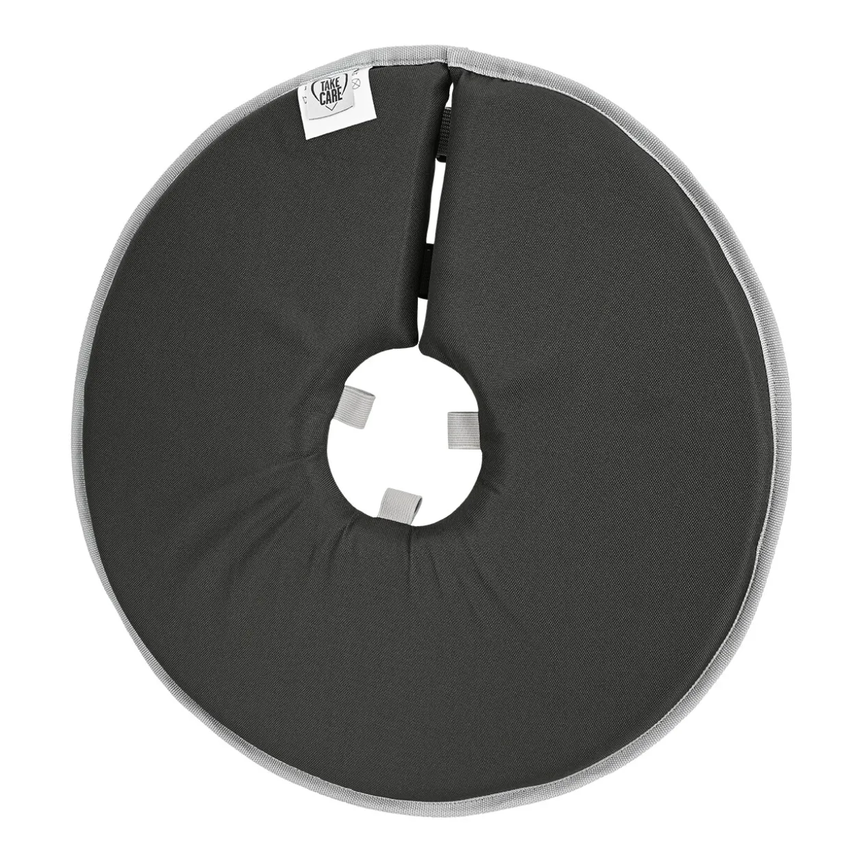 Application : Ouvrez la collerette TAKE CARE et enfilez le collier à travers les boucles élastiques. Placez la collerette autour du cou de l’animal. Fermez la collerette avec la fermeture à boucle, de sorte qu’elle soit bien ajustée autour du cou de l’animal. Fermez le collier.