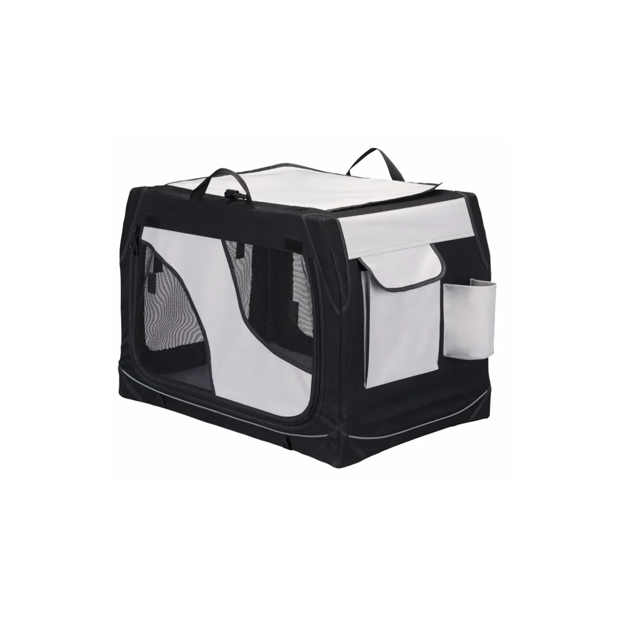 Avec ses poches latérales et son support de biberon, cette caisse pour chien est parfaite pour les voyages.